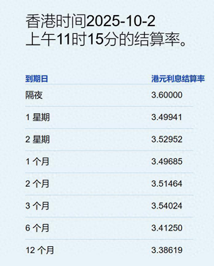 智通财经APP获悉,10月2日,港元拆息普遍向下,而与楼按相关的一个月拆息报3.49685%,跌4.077基点,兼连跌五日;反映银行资金成本的三个月拆息报3.54024%,升1.453基点。