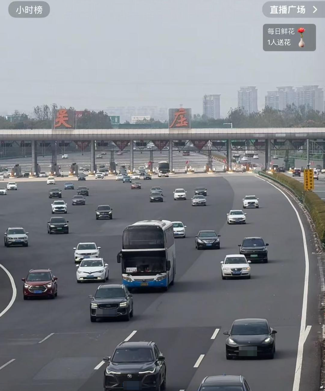 博主直播吴庄收费站车辆通行画面(8日12时左右)